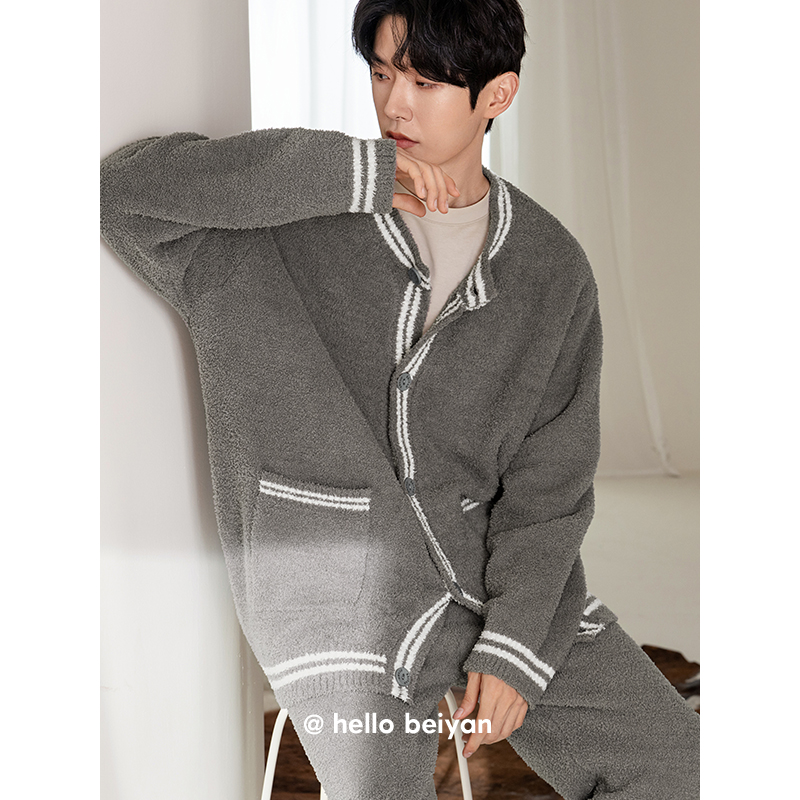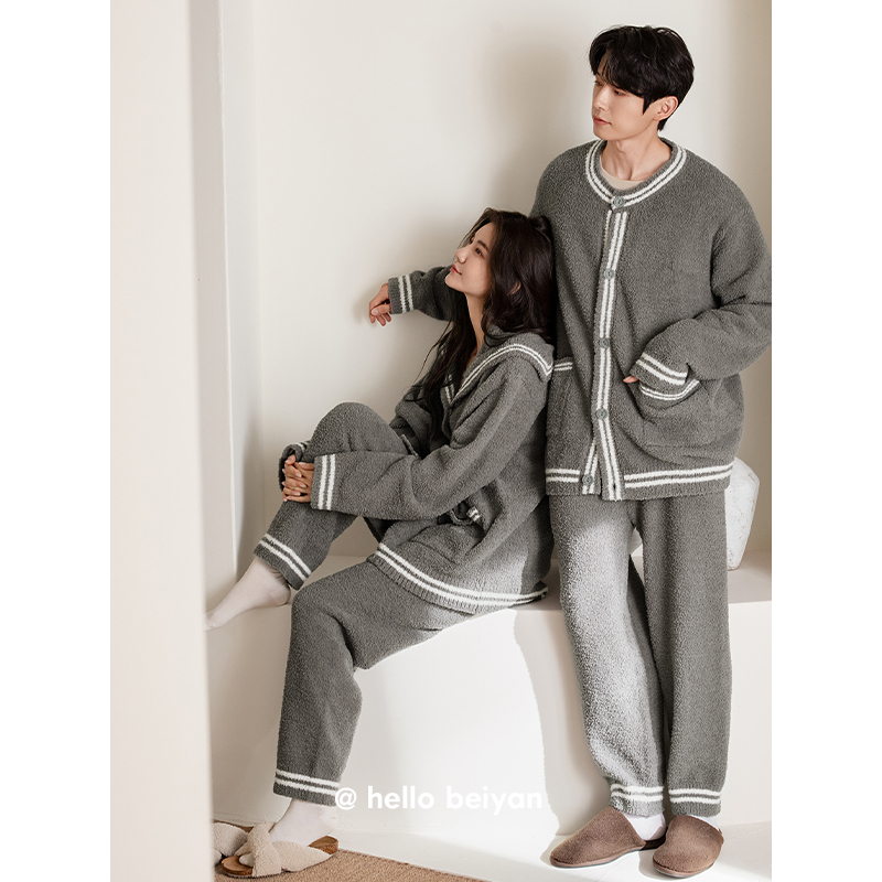 套装 贝妍珊瑚绒情侣睡衣女秋冬新款 学院风家居服男保暖半边绒大码