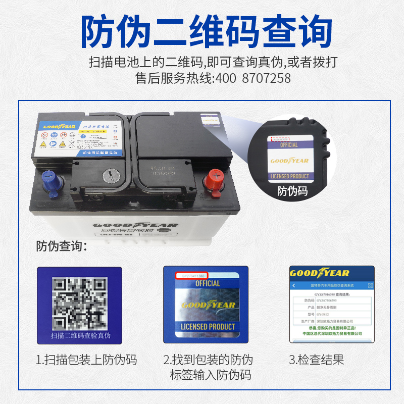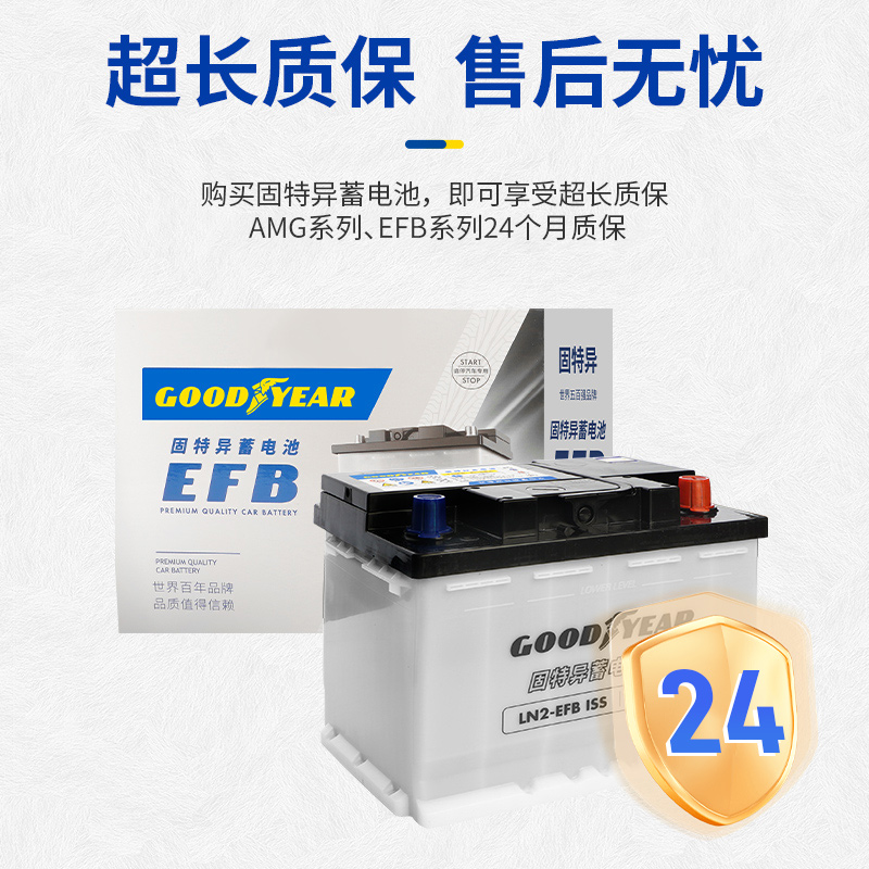 固特异蓄电池汽车电瓶EFB系列免维护12V40ah60ah70ah免费上门安装