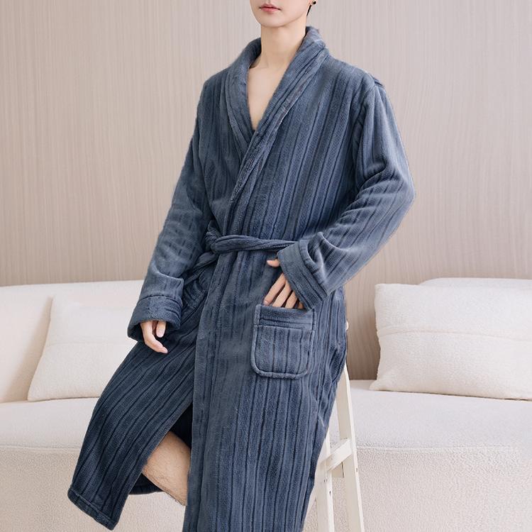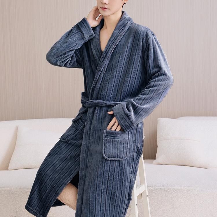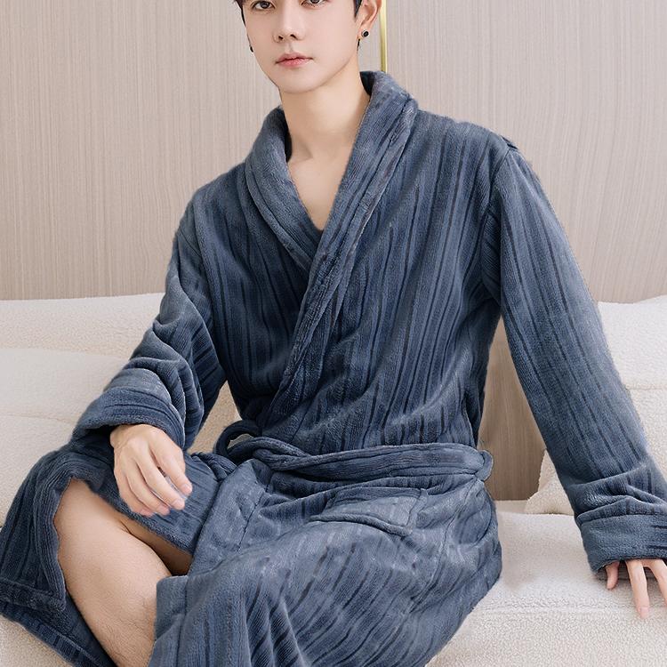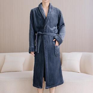 家居服睡衣男珊瑚绒男士 浴袍大码 睡袍法兰绒 加厚保暖中长款 秋冬季