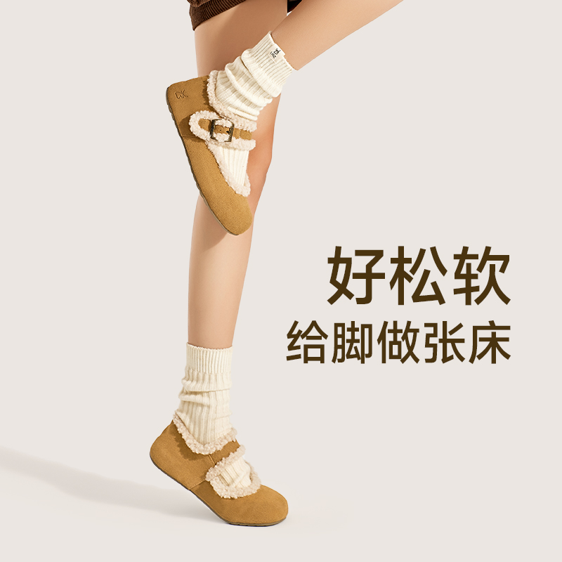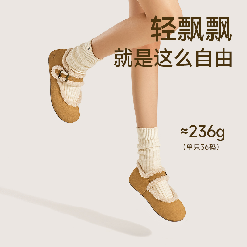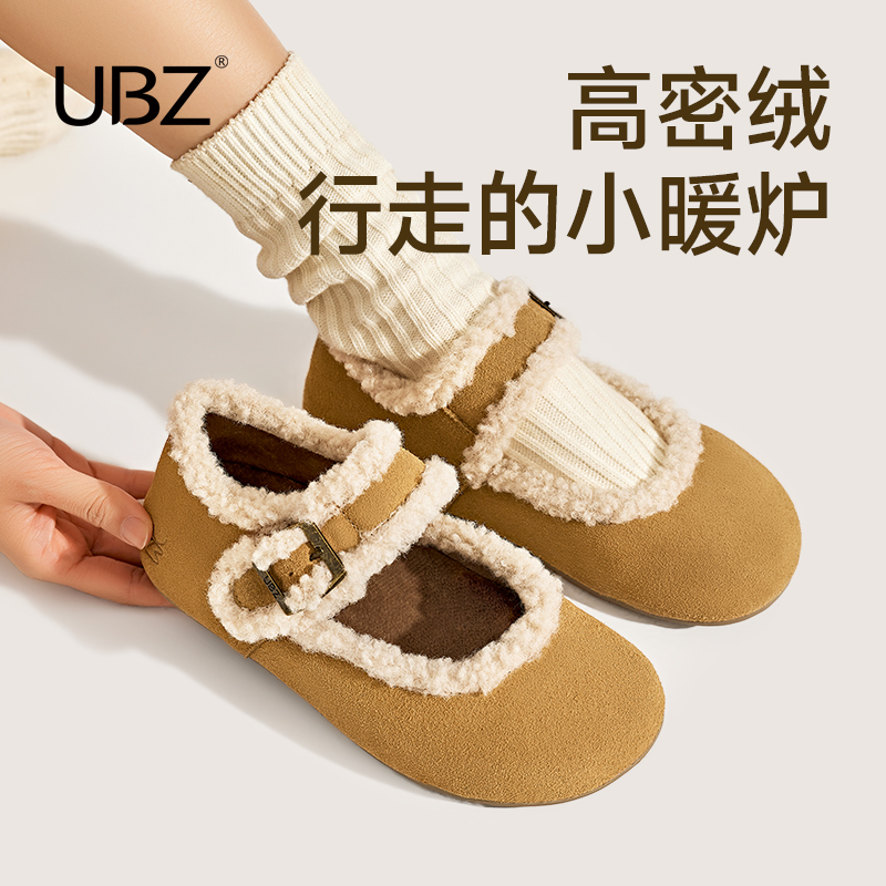 女2025年春秋季 加绒勃肯鞋 UBZ 软底博肯玛丽珍毛毛棉鞋 浮云卷