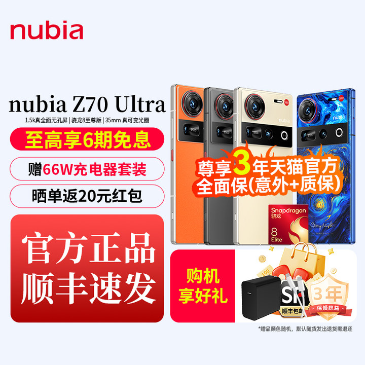 z70ultra新品 5G全网通游戏拍照防水努比亚官方正品 手机屏下摄像骁龙8至尊版 努比亚Z70Ultra新品