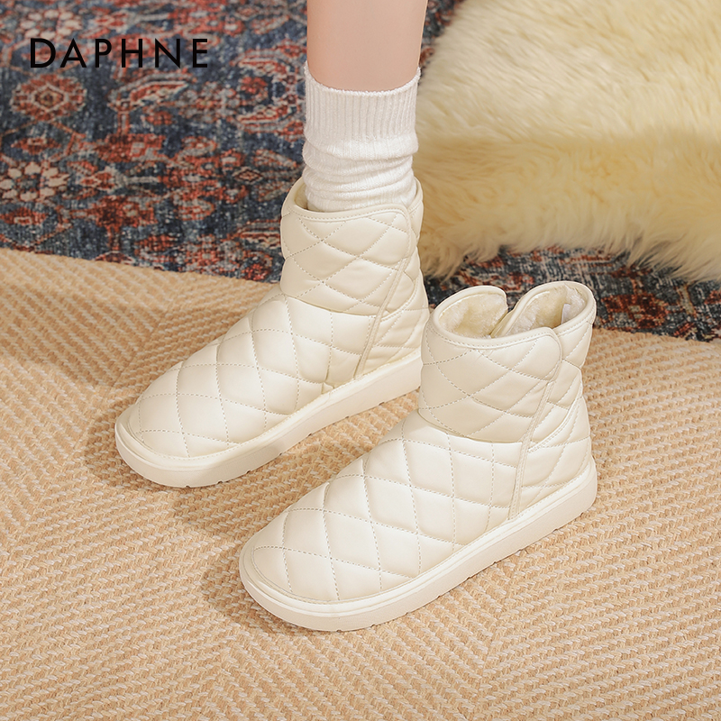加绒加厚短靴子东北保暖大棉鞋 冬季 2024新款 达芙妮厚底雪地靴女款