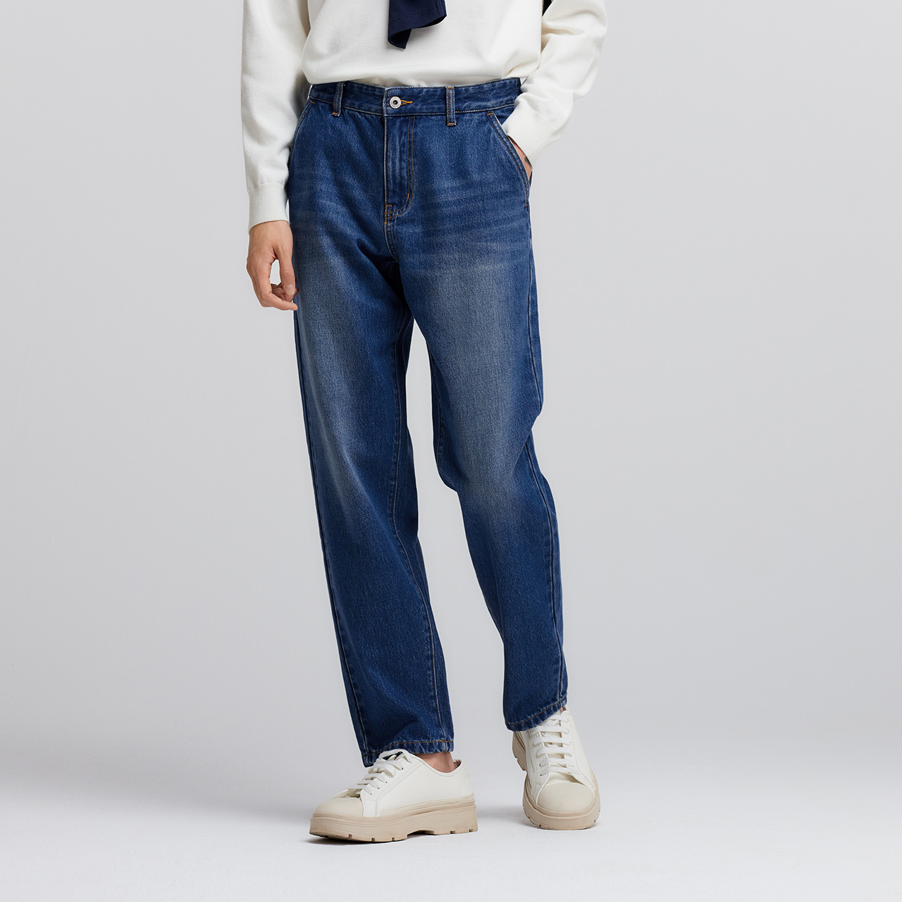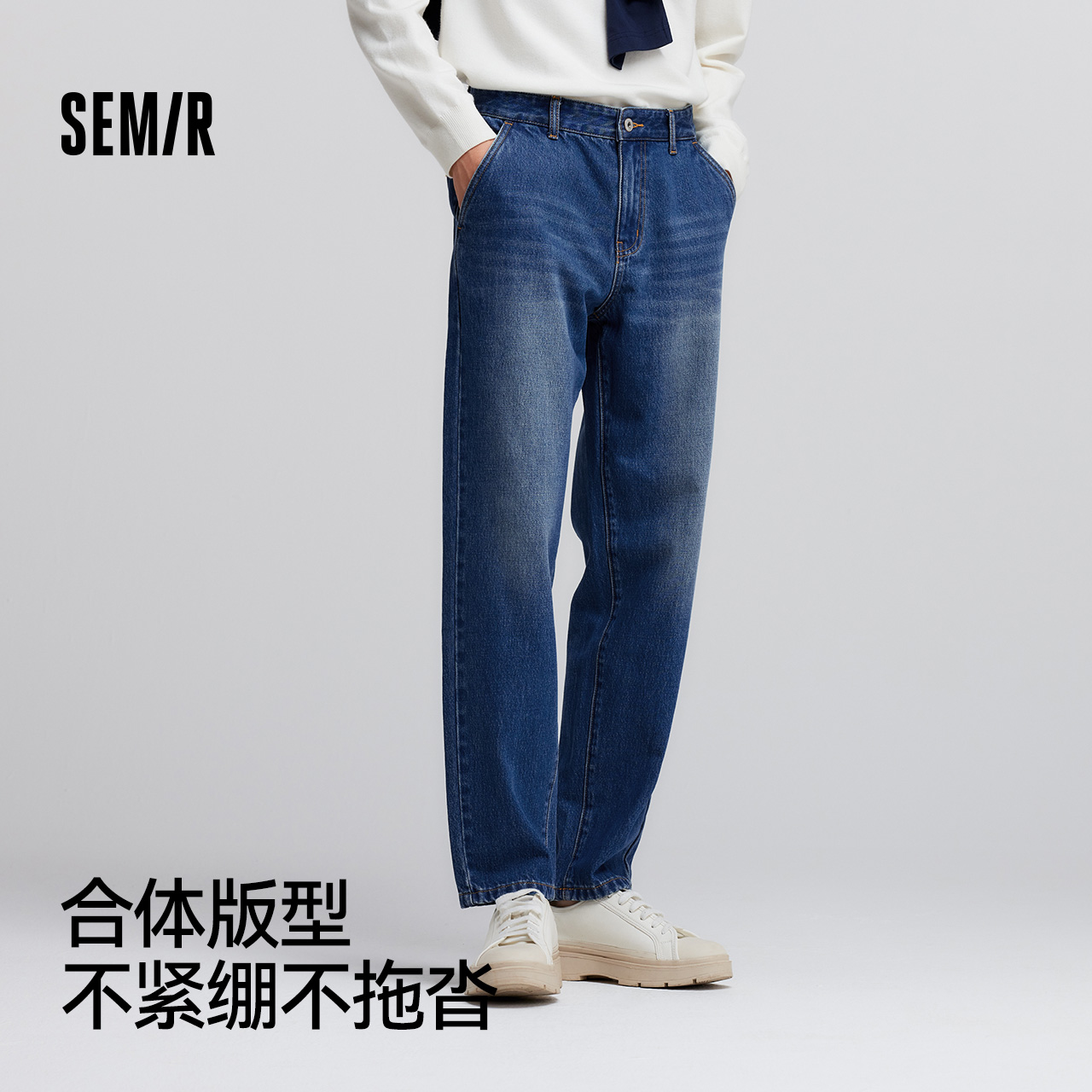 时尚 纯棉森马牛仔裤 做旧复古水洗长裤 新款 百搭锥形休闲 男2025春季
