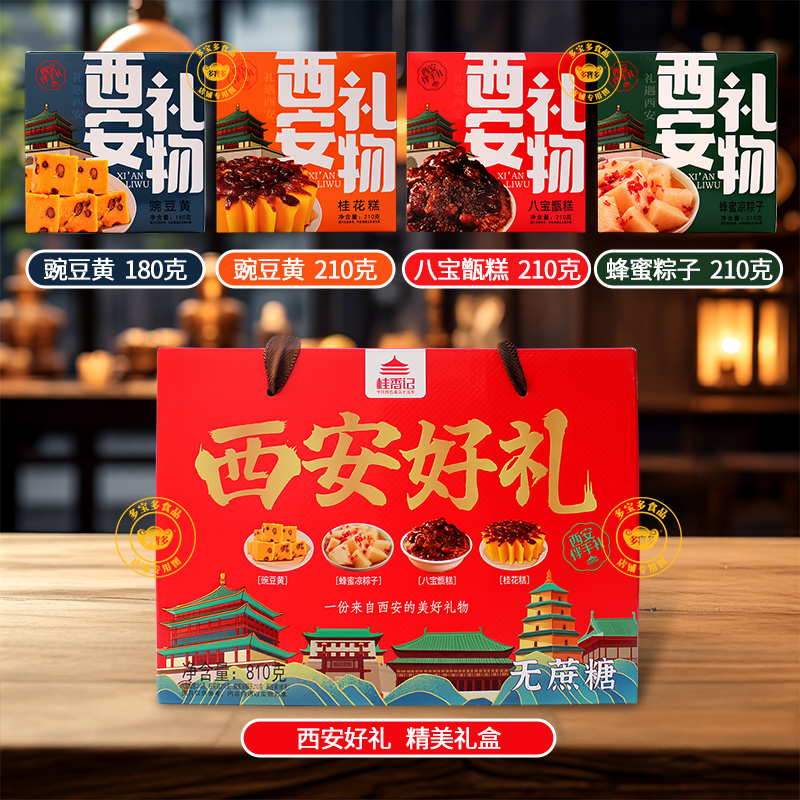 桂香记西安好礼810g陕西特产甑糕豌豆黄桂花糕蜂蜜凉粽子伴手礼盒