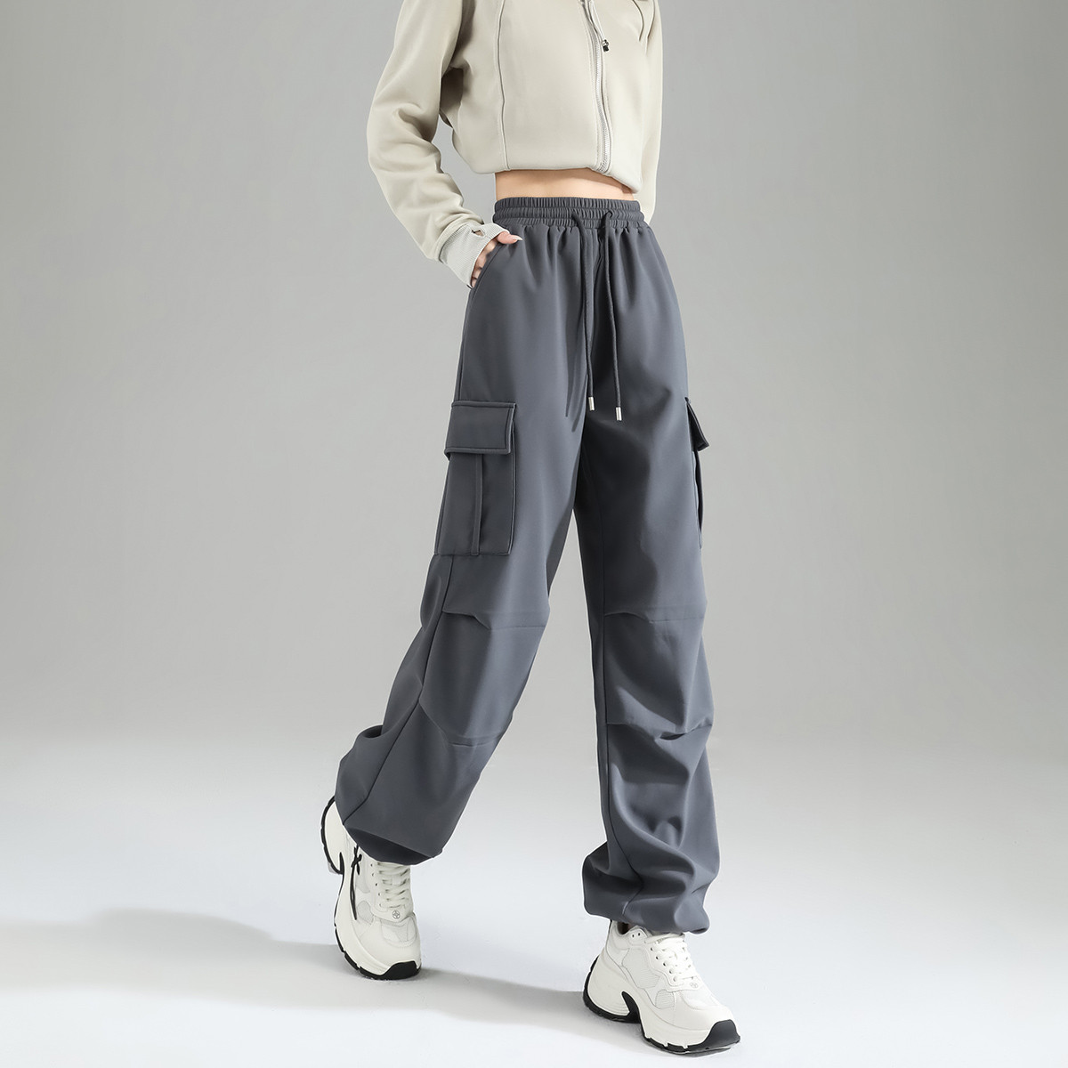 秋冬灰色香蕉裤 高腰垂感休闲加绒直筒卫裤 女春秋2025年新款 阔腿裤