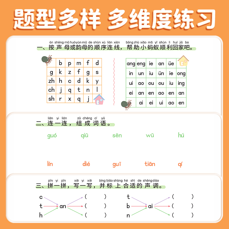 斗半匠拼音自然拼读拼音拼读训练幼小衔接音频朗读拼音练习彩图字词注音幼升小每日一练