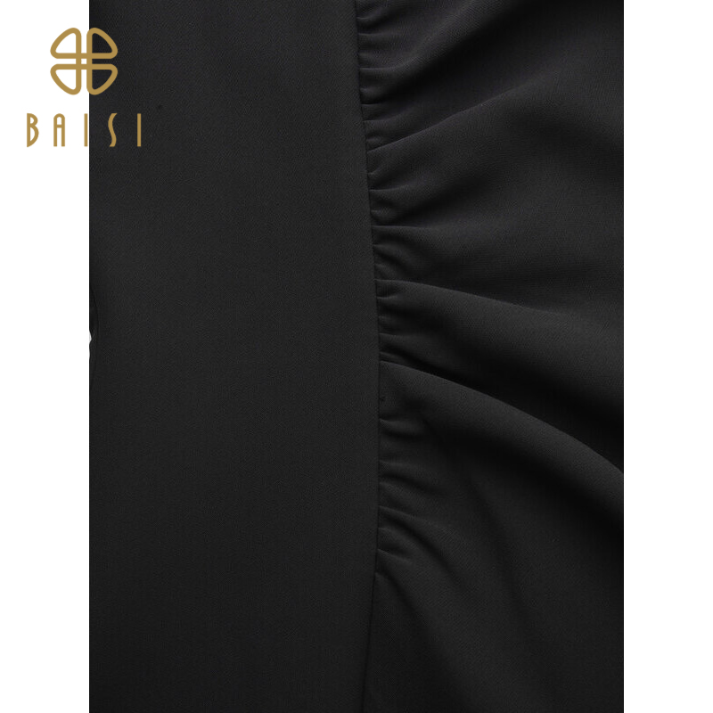 赫本风长袖 新品 开叉连衣裙女 名媛收腰褶皱包臀裙2024冬季 百丝法式