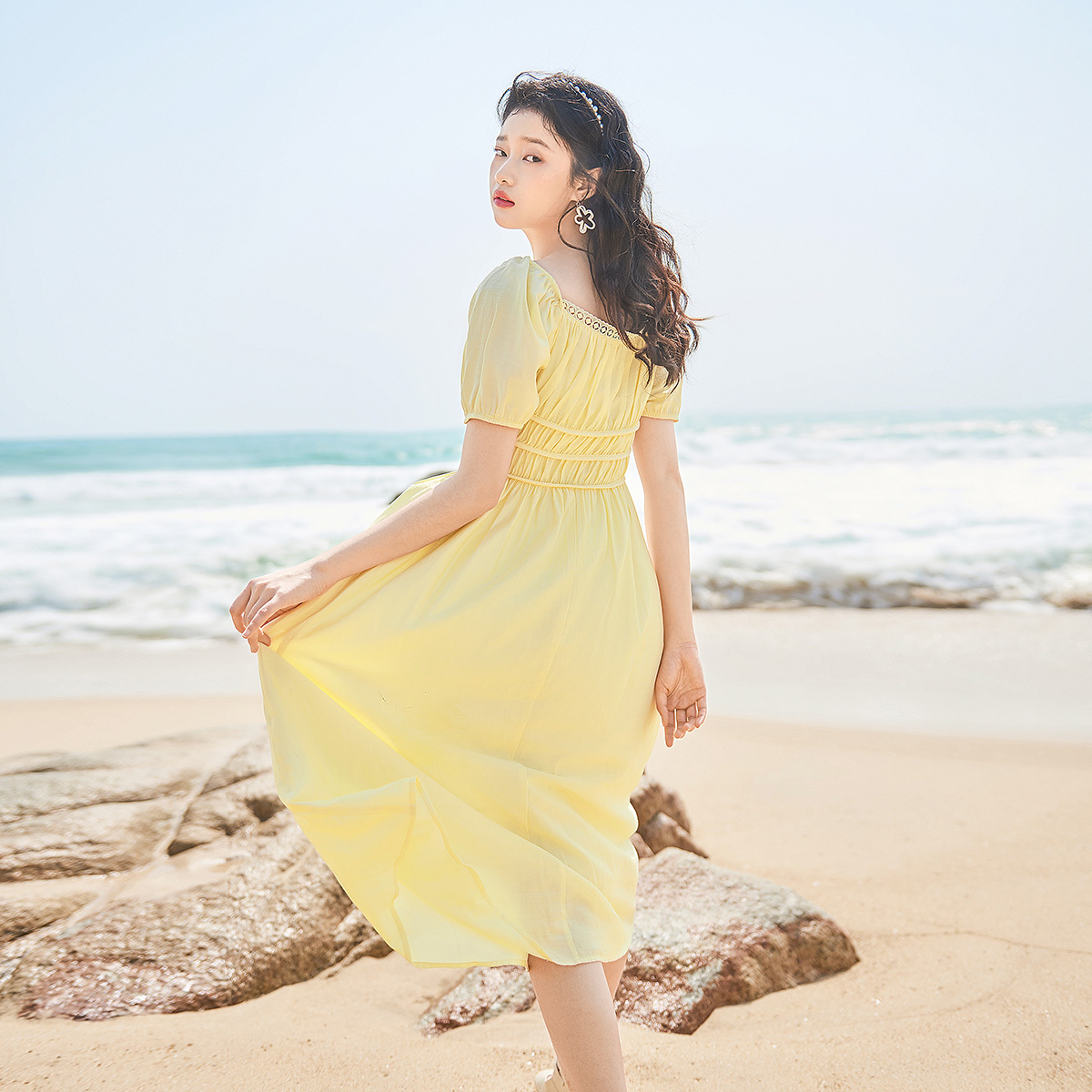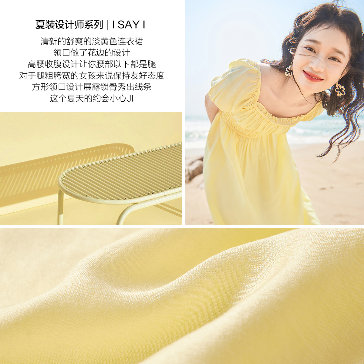 温柔气质方口领印花短款 法式 连衣裙 新款 LULUALWAYS我爱露露24秋季
