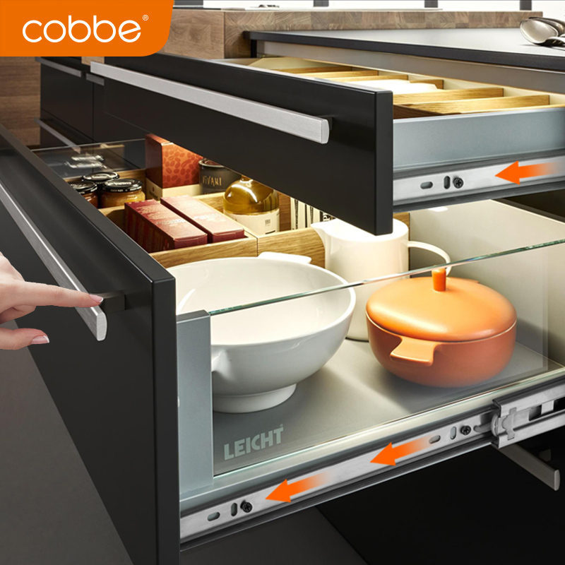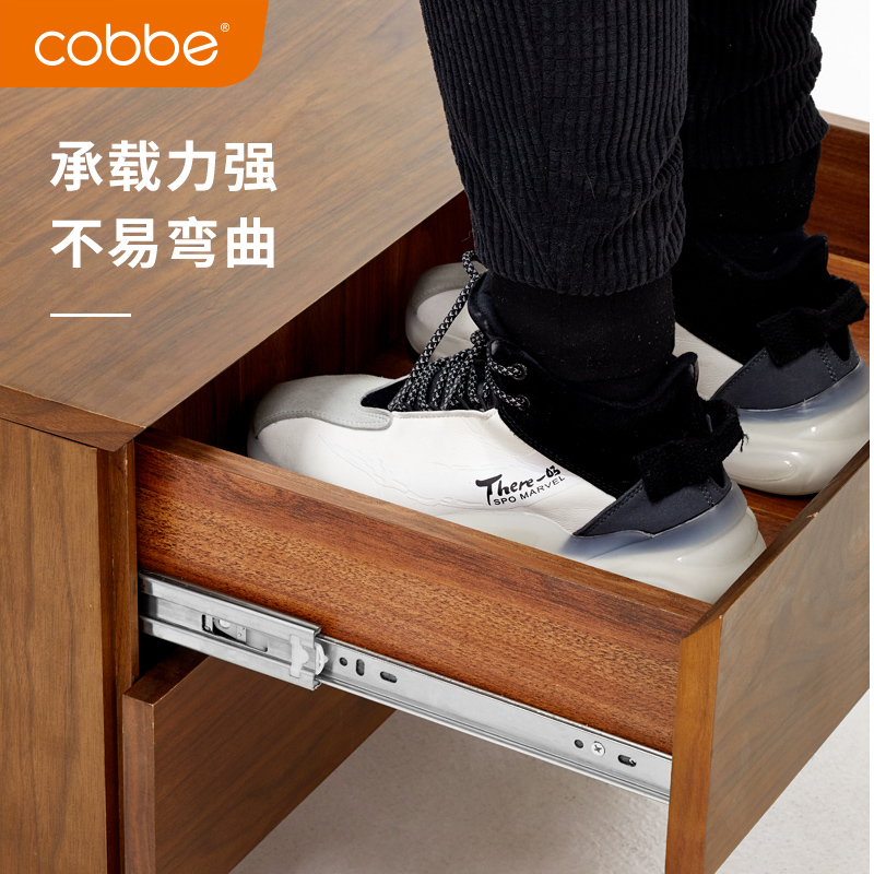 卡贝抽屉轨道三节轨阻尼缓冲滑道键盘托架304不锈钢导轨橱柜滑轨