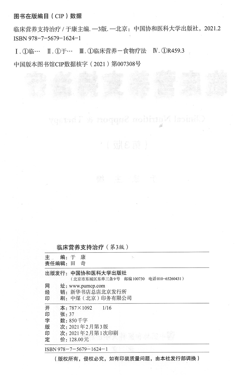 临床营养支持治疗第3版 社9787567916241 协和新百年系列医书主编于康中国协和医科大学出版