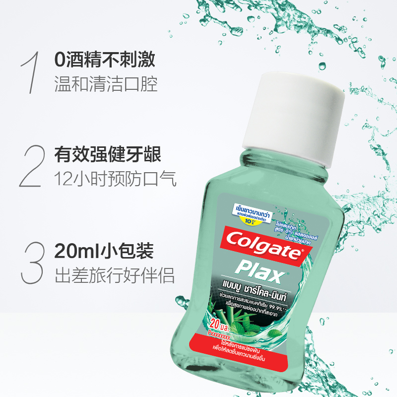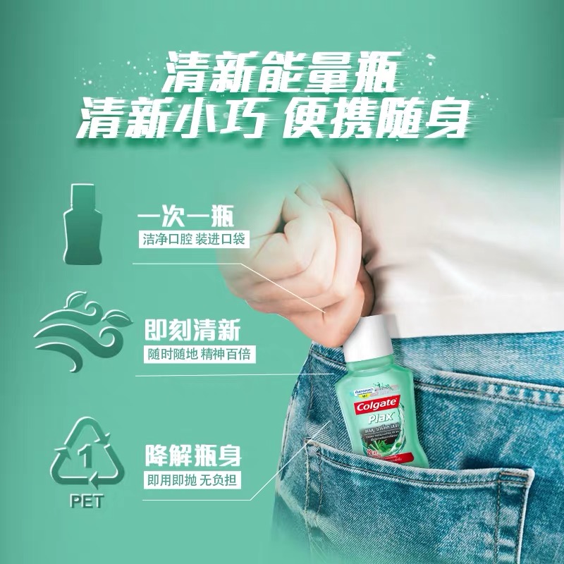高露洁贝齿竹炭薄荷味漱口水零酒精预防蛀牙清新口气便携随身装