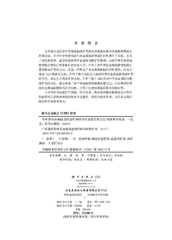 包邮 科学出版 洋中脊多金属硫化物成矿预测与资源量估算方法 陶春辉等 社 陶春辉 现货