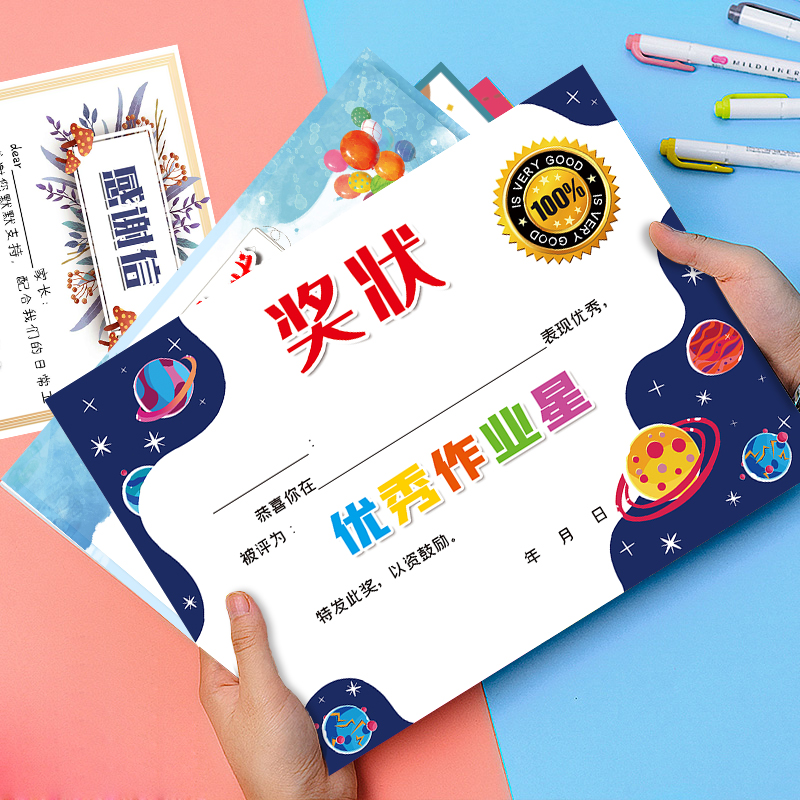 A4课堂小明星奖状书写小明星奖状优秀作业星语文之星小达人奖状幼儿园小学生奖状纸加厚157克铜版 纸可定制