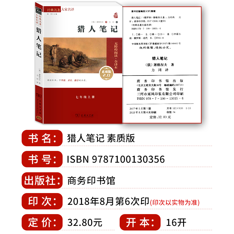 中小学生课外阅读书籍无障碍阅读世界名著中小学生课外阅读经典 正版 2.0大家名作全译本无删减版 猎人笔记素质版 名著商务印书馆 现货