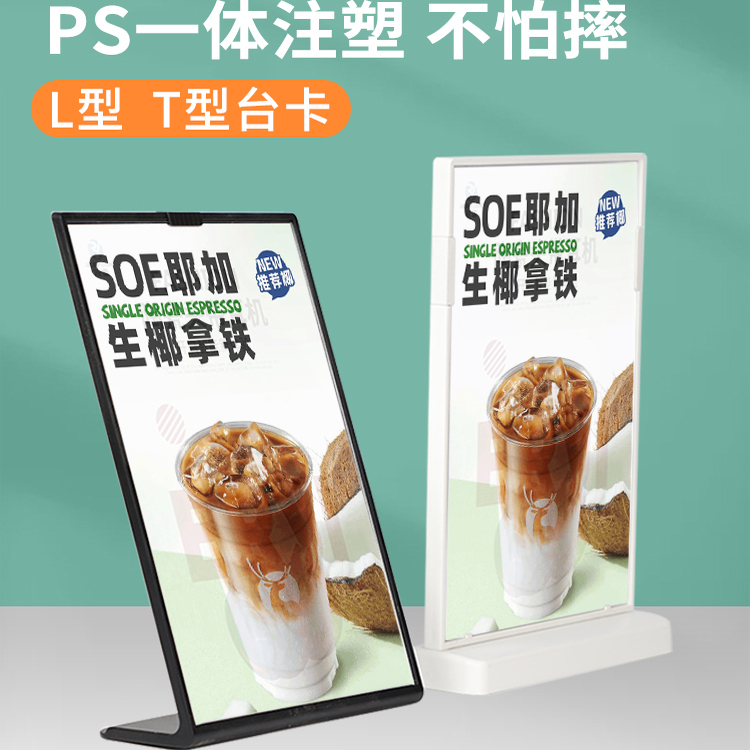 台卡架展示牌桌面L型T型双面立牌A4奶茶店价目表定制A5塑料水牌亚克力台式 菜谱价格台签 点餐牌三角二维码