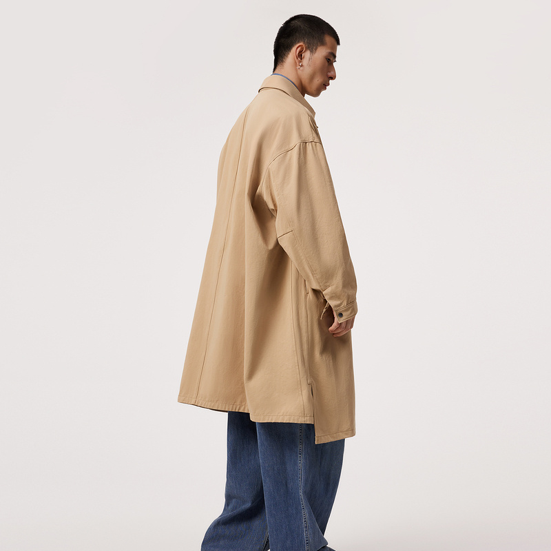 衬衫 新款 式 风衣中长款 外套 速写男装 翻领休闲潮流复古廓形时尚 春季