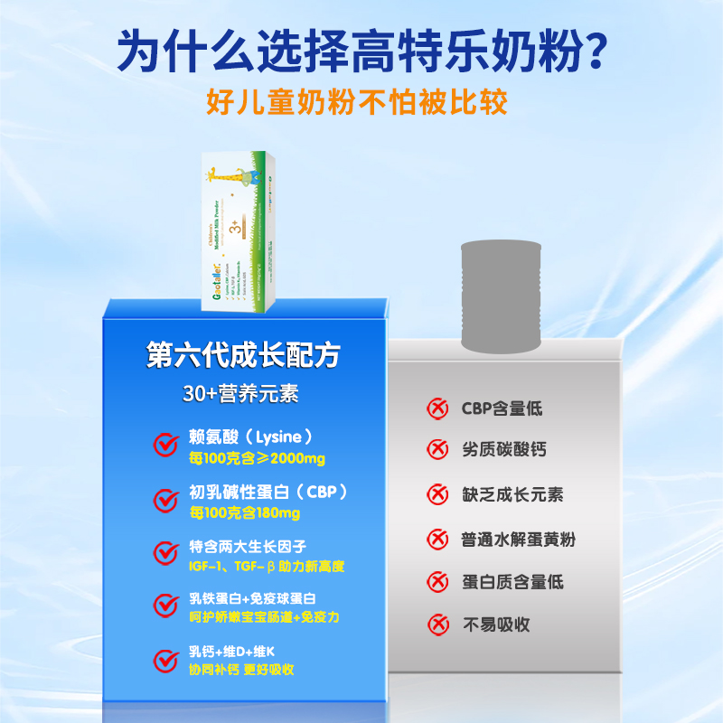 15岁赖氨酸CBP 2条儿童成长奶粉3 新西兰高特乐试用装 25g