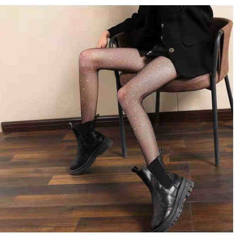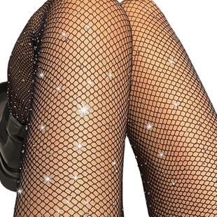 袜 网红性感带钻渔网袜ins超火烫钻黑丝吊带一体连裤 秋季 2021新款