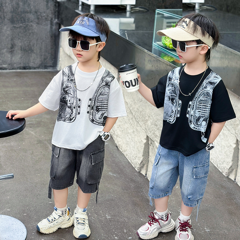 运动装 男童夏季 潮酷儿童短袖 2025新款 洋气男孩宝宝休闲衣服潮 套装
