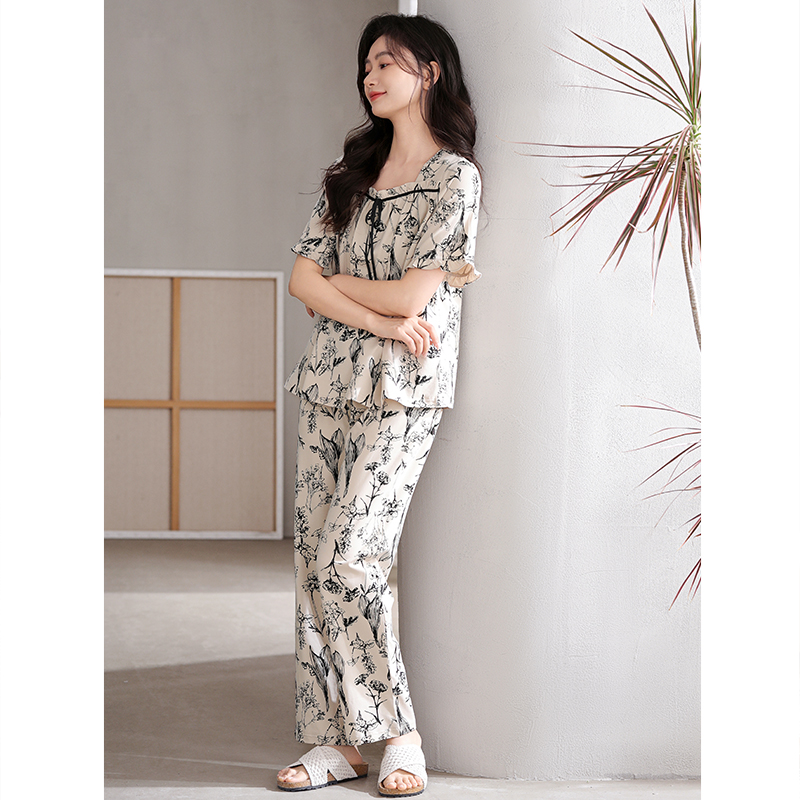 夏天中年妈妈冰丝凉感夏款 睡衣女士夏季 薄款 长裤 家居服 莫代尔短袖