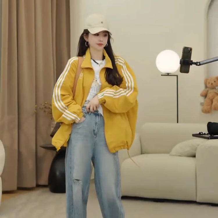 欧货条纹笑脸冲锋衣外套女2025春秋季 运动棒球服宽松显瘦百搭夹克