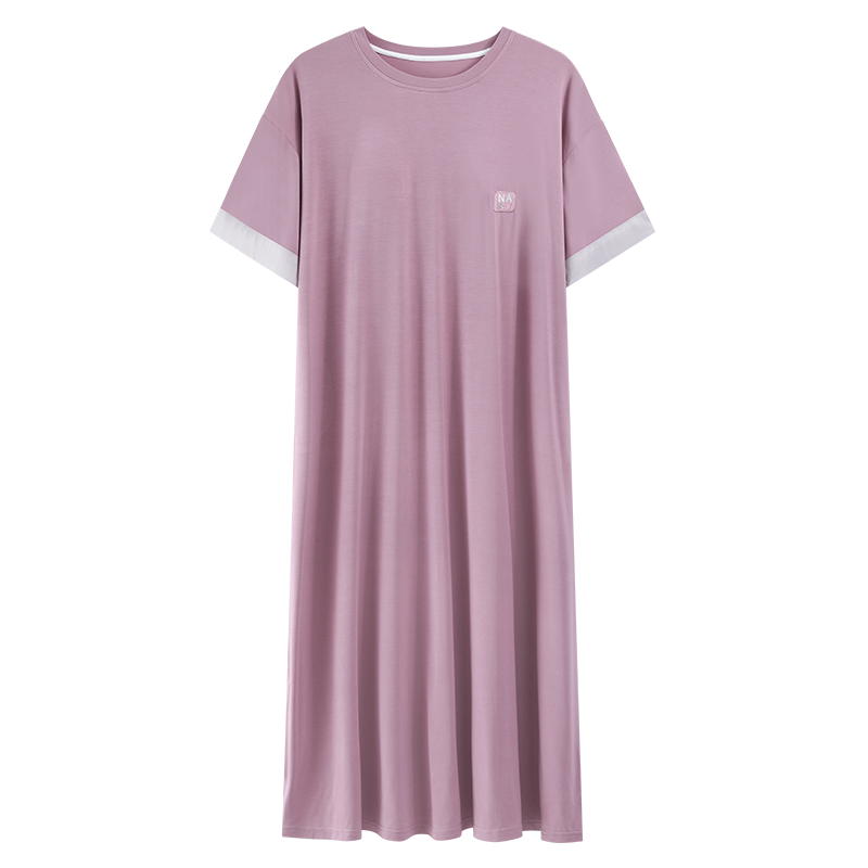 睡衣夏季 韩版 加大码 棉绸睡裙女士短袖 人造棉宽松舒适居家服 加长款