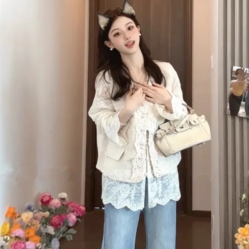 镂空花边纽扣针织衫 秋天叠穿马甲 吊带背心女内搭上衣外搭独特罩衫