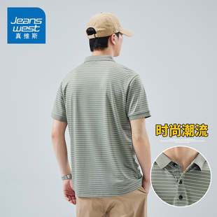 薄款 男夏季 宽松透气上衣条纹翻领休闲T恤 Polo衫 KZH真维斯港风短袖