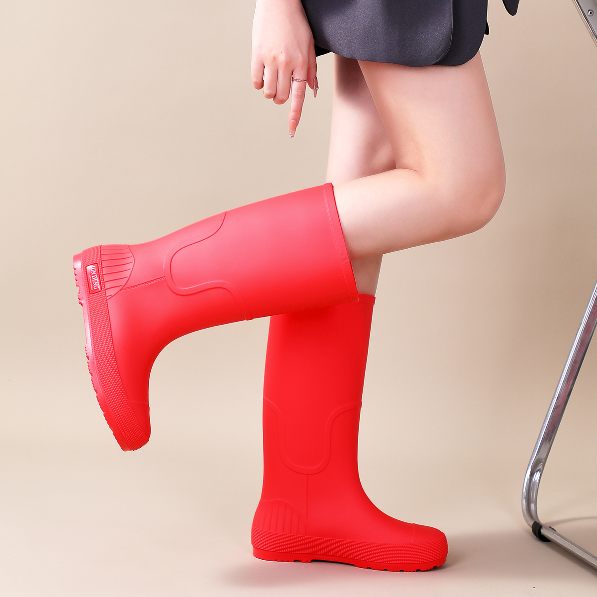 厨房防滑胶鞋 时尚 雨靴厚底高筒保暖水鞋 女款 防水工作 女士耐磨雨鞋