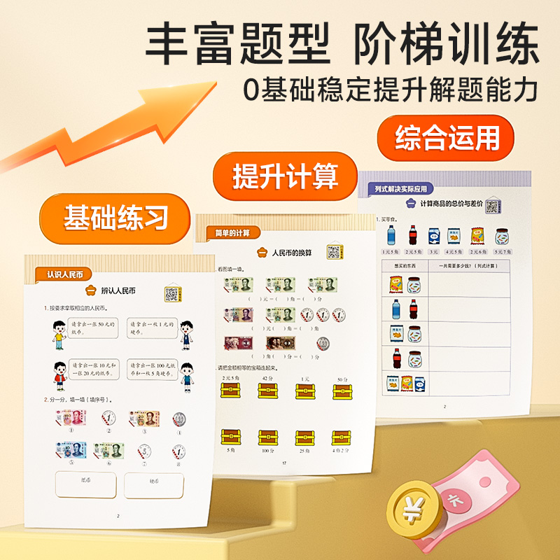 认识人民币小学生钱币元 认识人民币练习册人教版 角分货币认知同步练习册数学专项训练 时光学