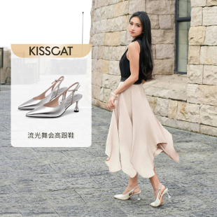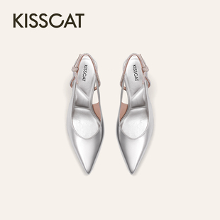 银色凉鞋 尖头后空凉25夏新尖头高跟鞋 流光舞会 KISSCAT接吻猫
