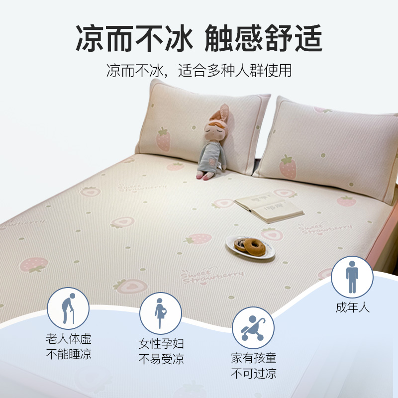 洁丽雅冰豆豆凉席冰丝席可机洗夏季 学生宿舍单人席子软席床笠款