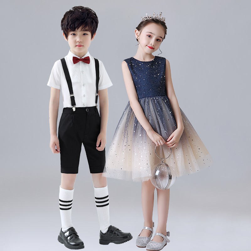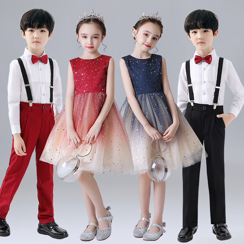 国庆儿童演出服女童舞蹈纱裙红小学生大合唱诗歌朗诵比赛表演服装