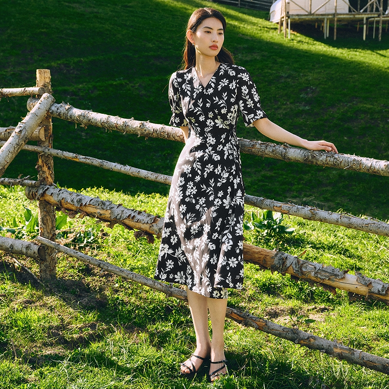 Laurel劳芮经典 周同款 高智圆领连衣裙女LWD341Y05800 巴黎时装