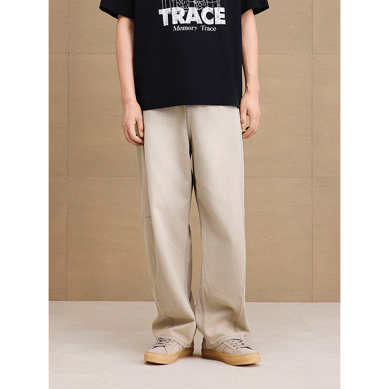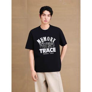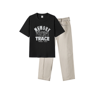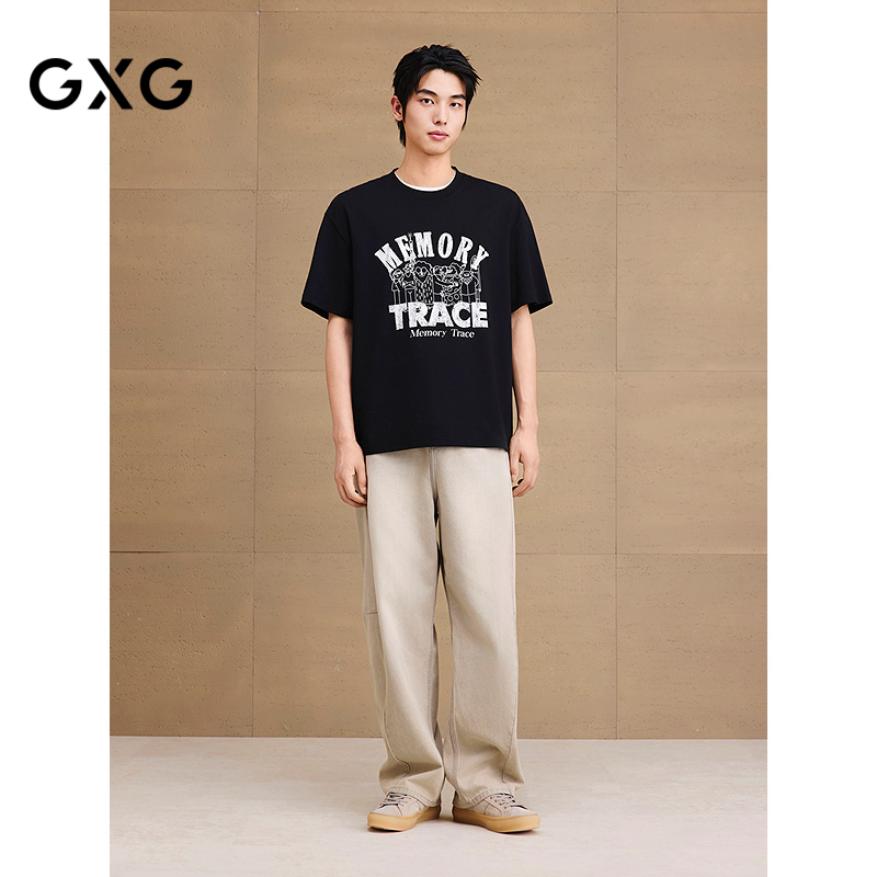 通勤套装 GXG男装 图案印花休闲T恤锥形弯刀牛仔长裤 新品 25年夏季