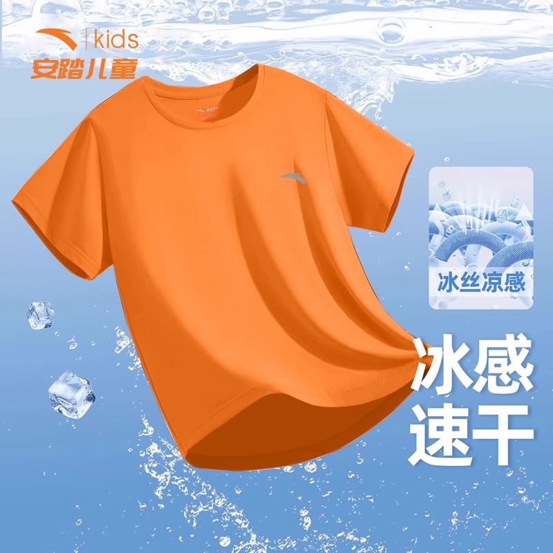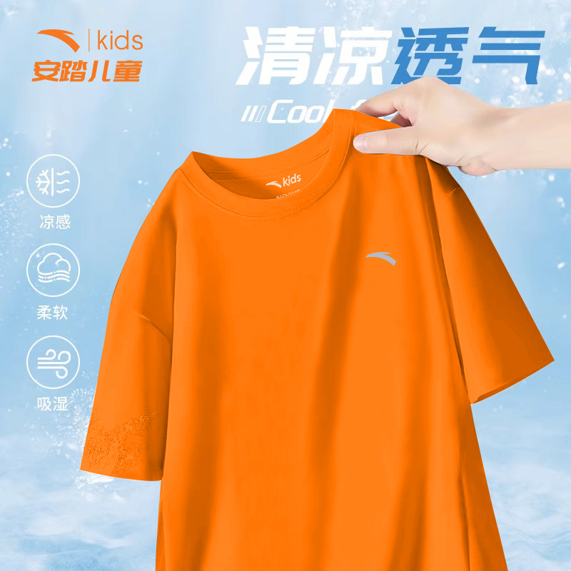 男童速干T恤2025秋季 夏装 新款 大童运动半袖 儿童透气短袖 安踏童装