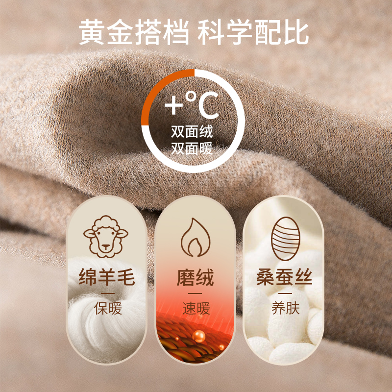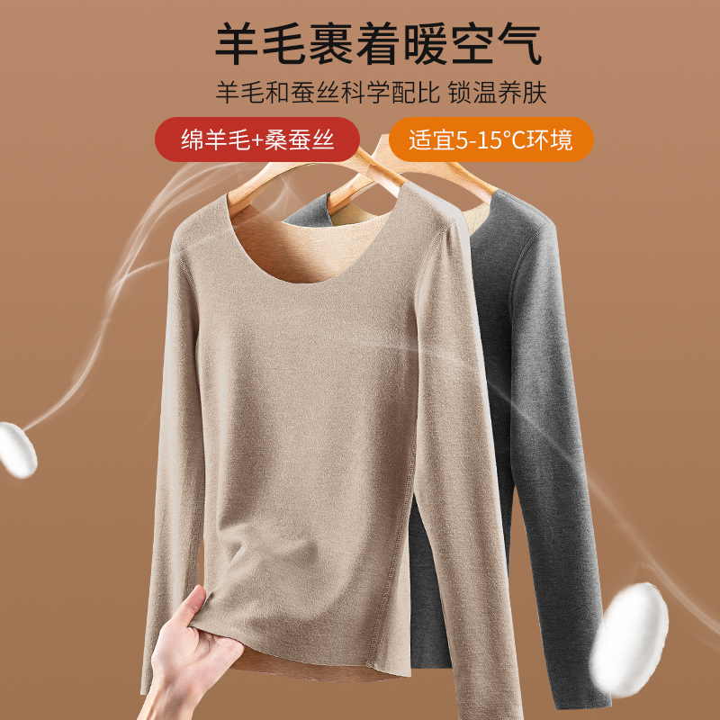 羊绒上衣德绒 秋衣秋裤 蕉羊毛蚕丝女士保暖内衣套装 加绒加厚打底衫