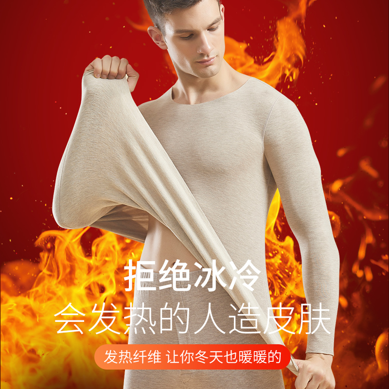 套装 秋衣秋裤 发热加绒上衣 羊毛保暖内衣秋冬新款 ubras羽绒化男士