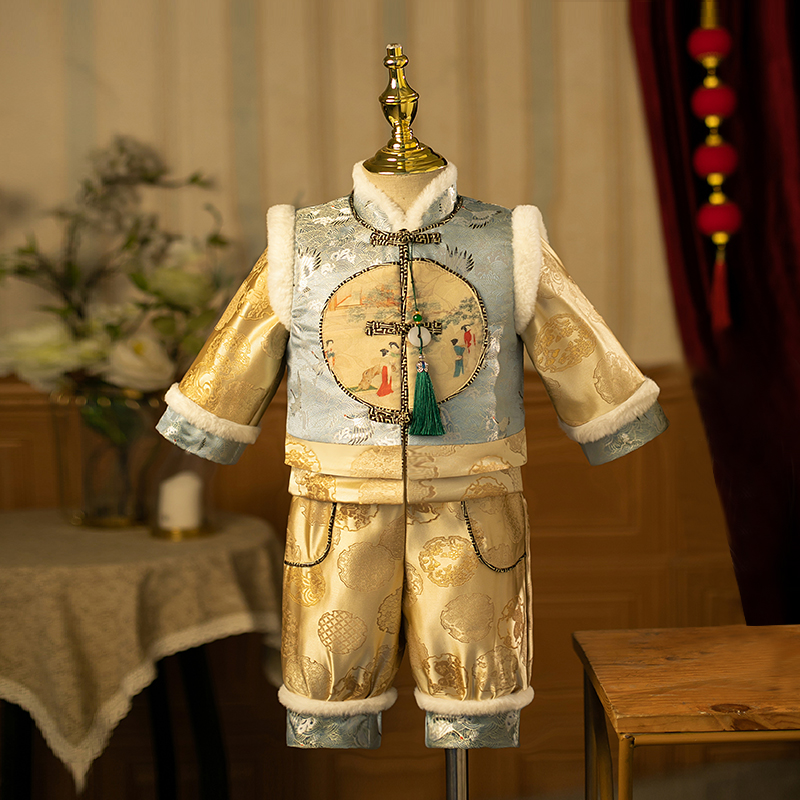 冬季 儿童唐装 男童抓周拜年服新中式 周岁礼服男宝宝中国风2025新款
