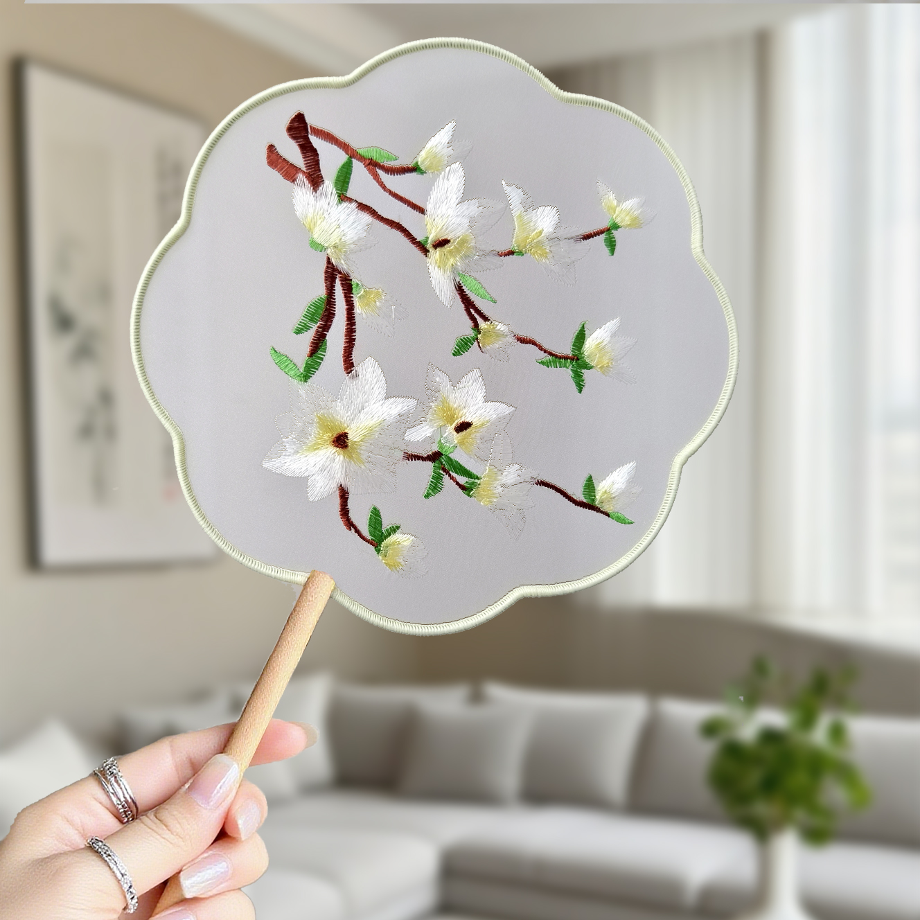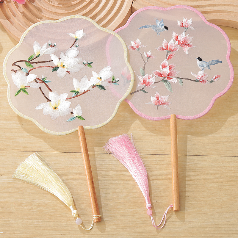 扇子古风团扇苏绣女汉服舞蹈儿童女童刺绣国风双面旗袍古装 新中式