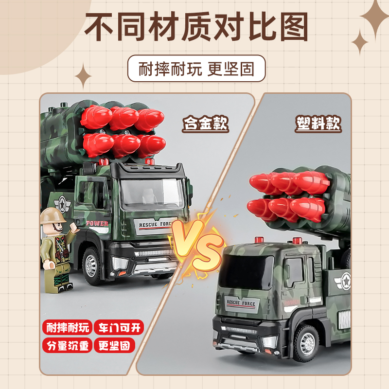大号仿真合金导弹车模型儿童可发射火箭炮玩具坦克车男孩军事战车