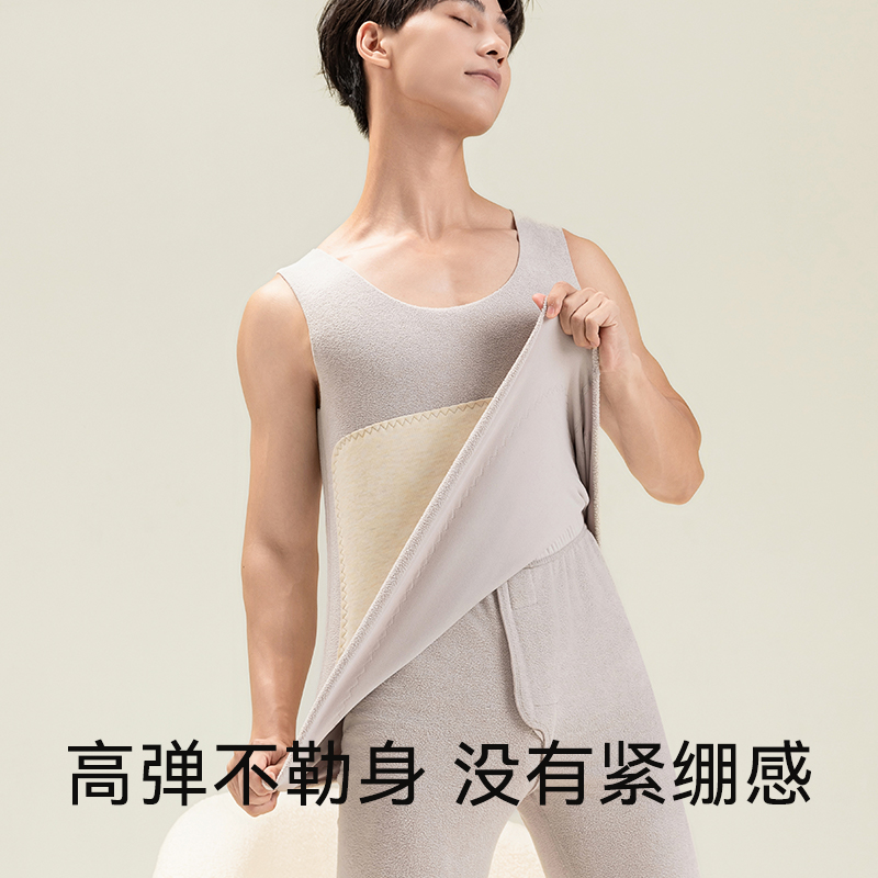 芬腾羊毛蚕丝保暖内衣男绒德无痕发热内穿加绒加厚打底背心冬上衣