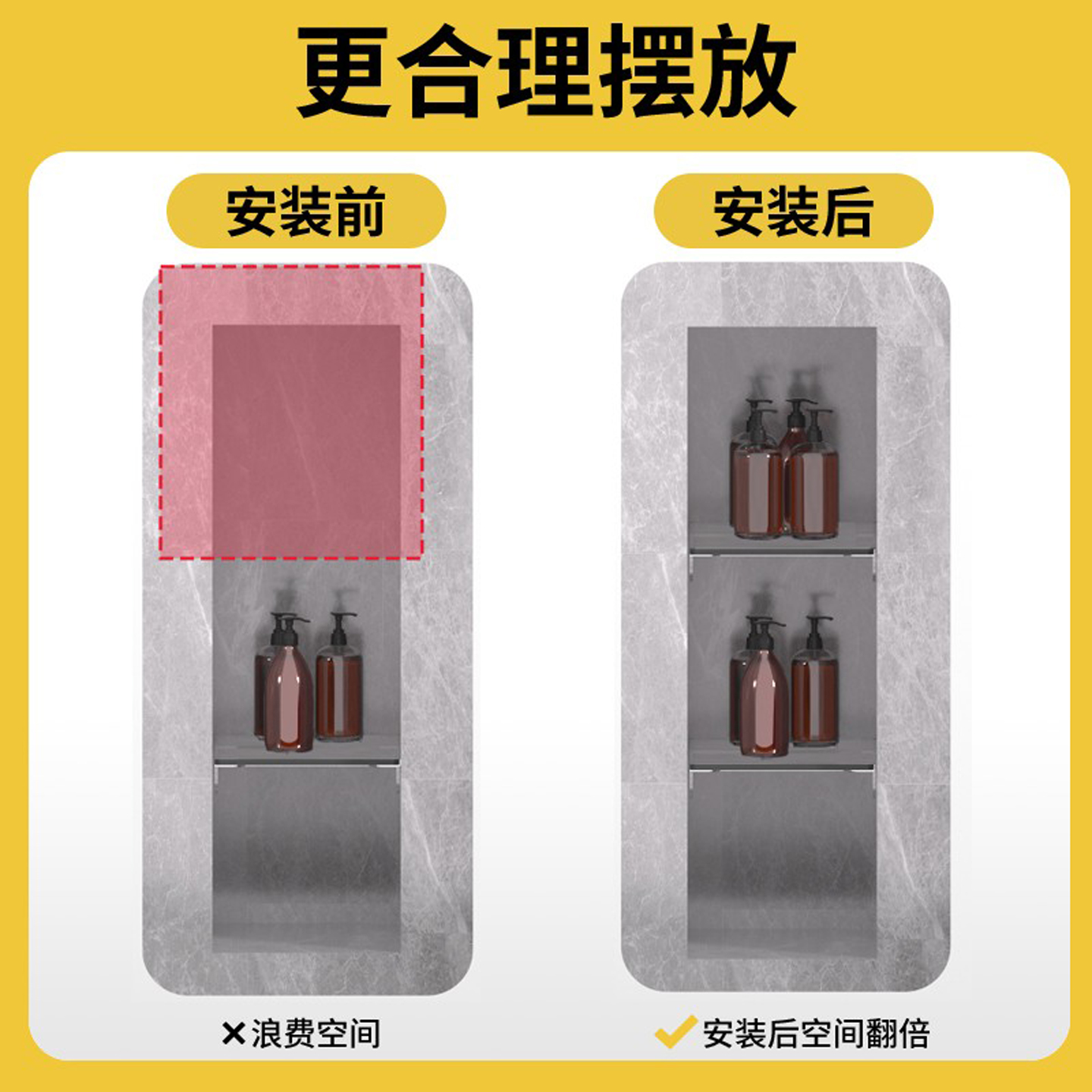 亚克力免打孔沥水壁龛隔板分层收纳卫生间浴室置物架隔板防水层托