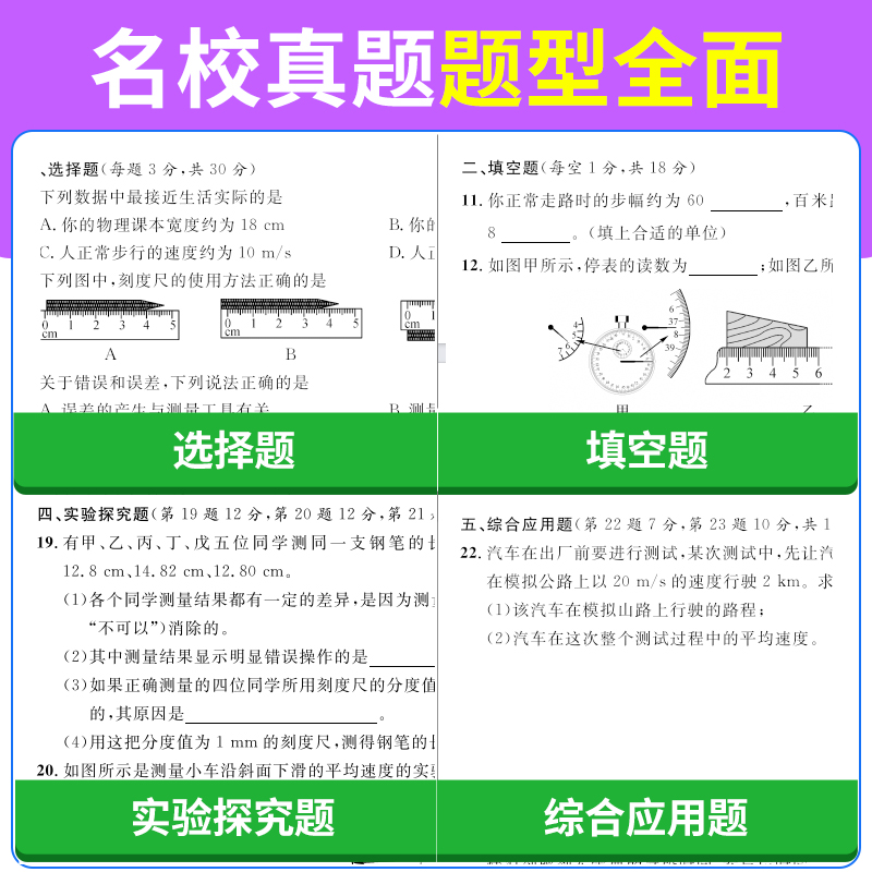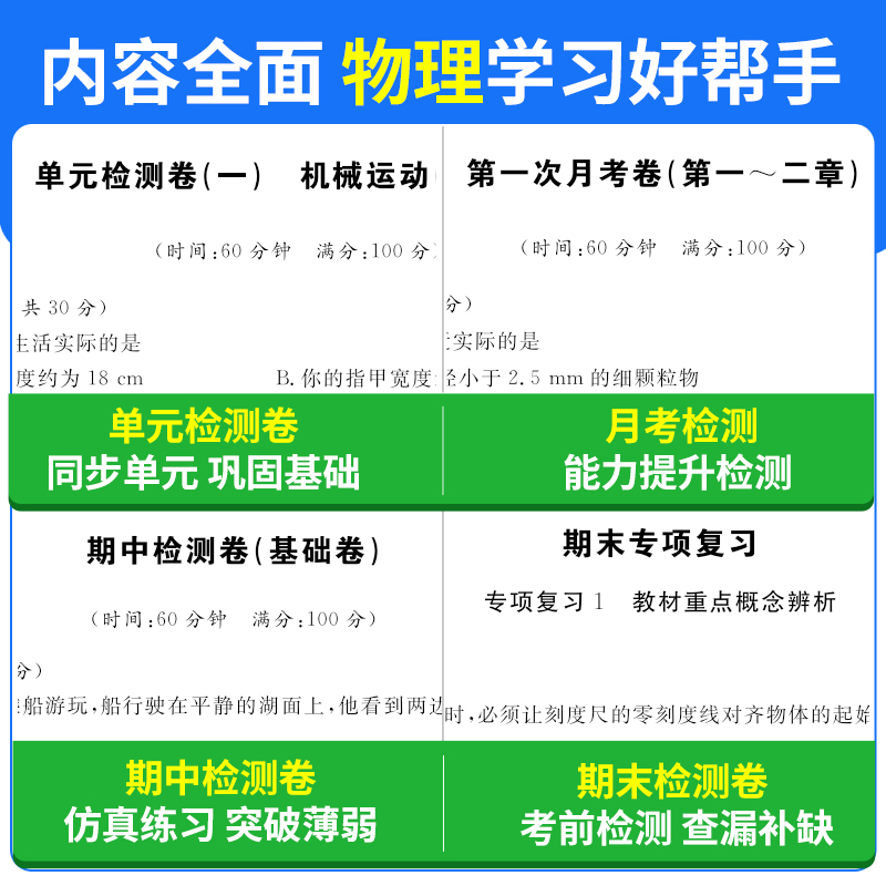 名校课堂单元 卷初中八年级上册物理试卷初二月考期中期末复习考试卷同步教材实验探究综合应用基础知识巩固专项训练提升检测试卷子
