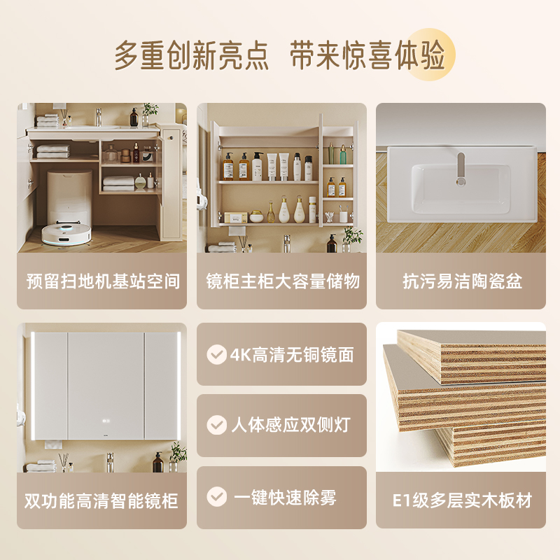 浪鲸奶油风扫地机基站收纳陶瓷一体盆浴室柜卫生间洗手盆013