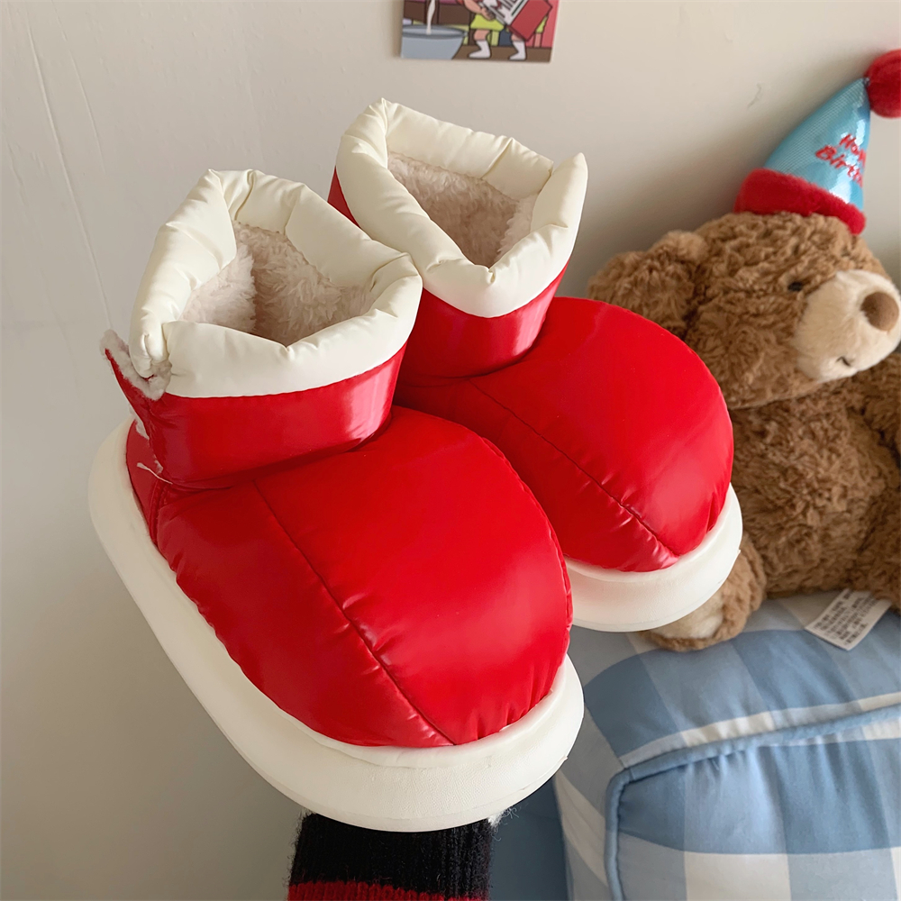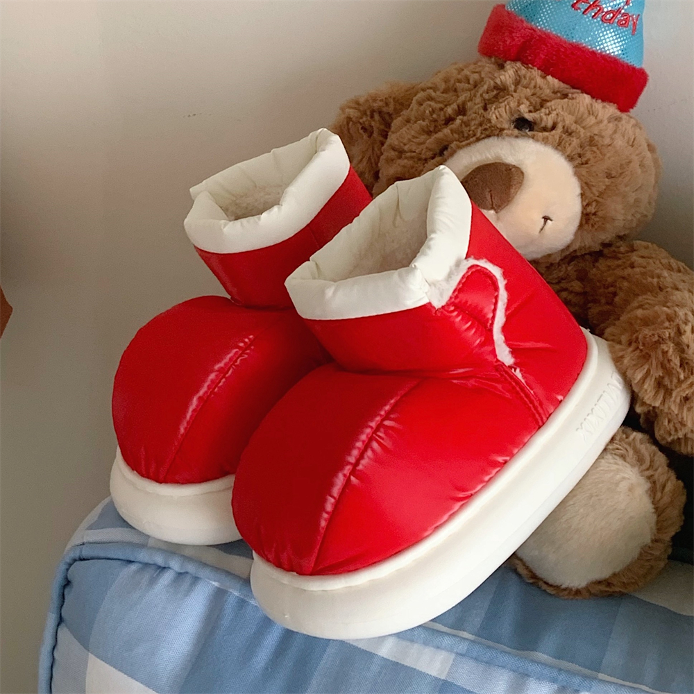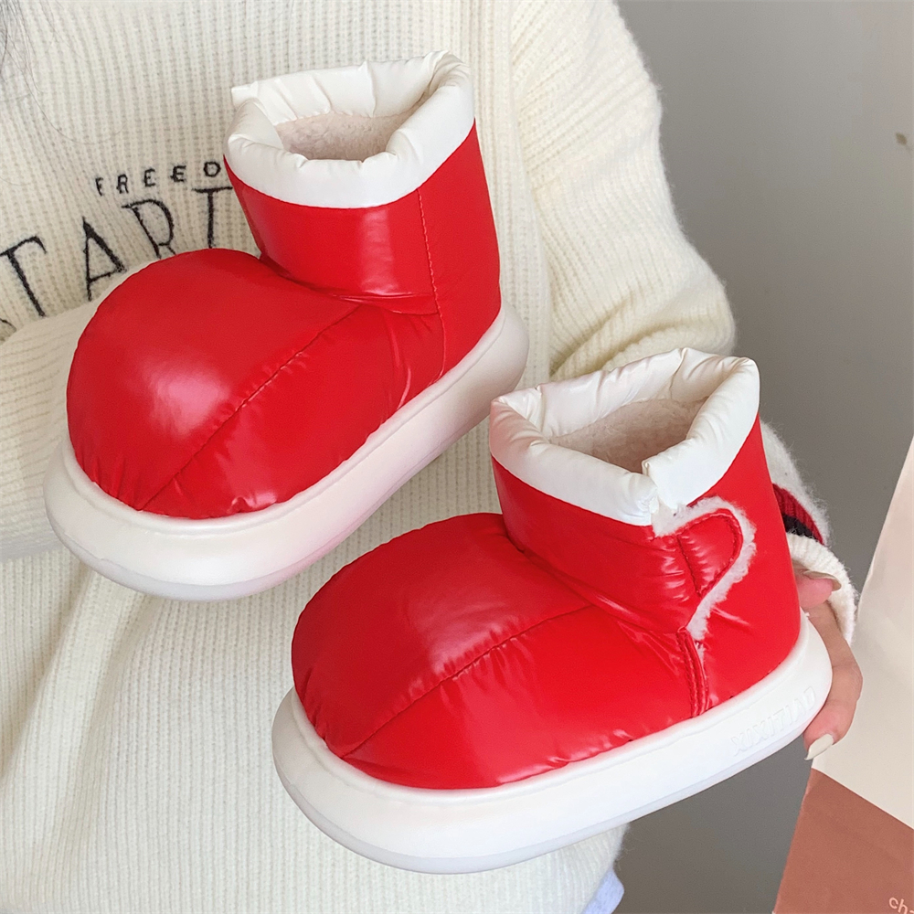 韩版 女冬季 ins潮保暖加绒亲子户外防滑魔术贴雪地靴 红色棉鞋 时尚