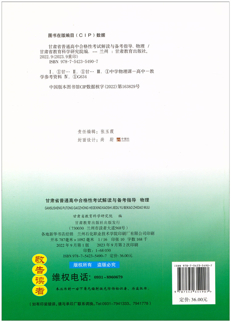 2023版 高二会考甘肃省普通高中合格性考试解读与备考指导物理考点解读例题解析备考训练物理