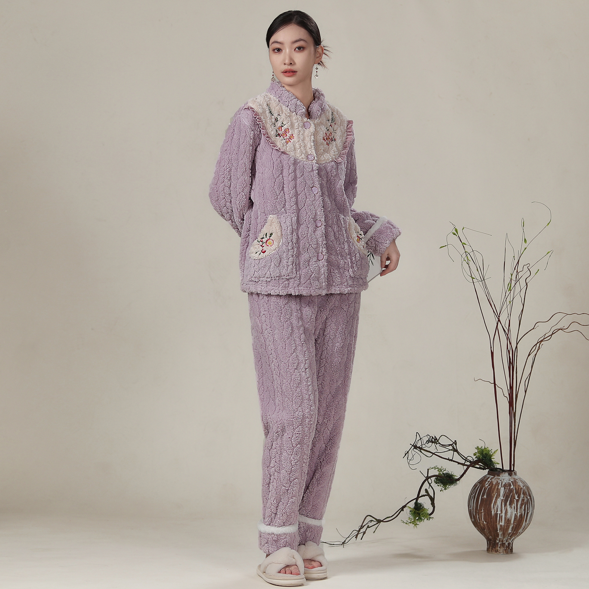家居服春秋新款 加厚法兰绒加绒套装 珊瑚绒睡衣女秋冬季 2025年冬款