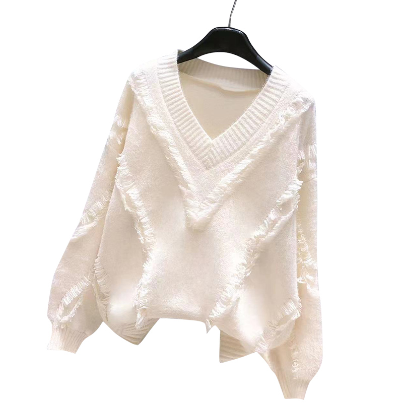 妖精 慵懒风宽松显瘦 口袋亮闪彩点V领咖色毛衣女2025年秋冬新款