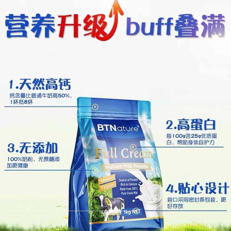 奶粉新西兰进口原贝特恩蓝一号胖子全脂脱脂成人正品 官方旗舰袋装